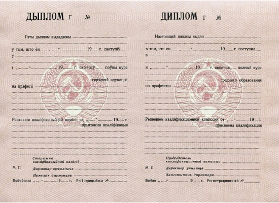 Покупая диплом ПТУ / училища Белоруссии 1970 - 1993 гг. в Компании «EXPRESS-Дипломы», вы можете быть уверены в его достоверности и соответствии государственным нормам и требованиям. Мы гарантируем, что наши Диплом ПТУ / училища Белоруссии 1970 - 1993 гг. заполняются по учебному плану нужного учебного заведения на нужный год окончания, делается всё по уставу.