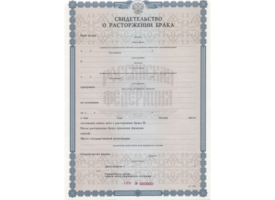 Свидетельство о расторжении брака 1998 - 2018 гг.